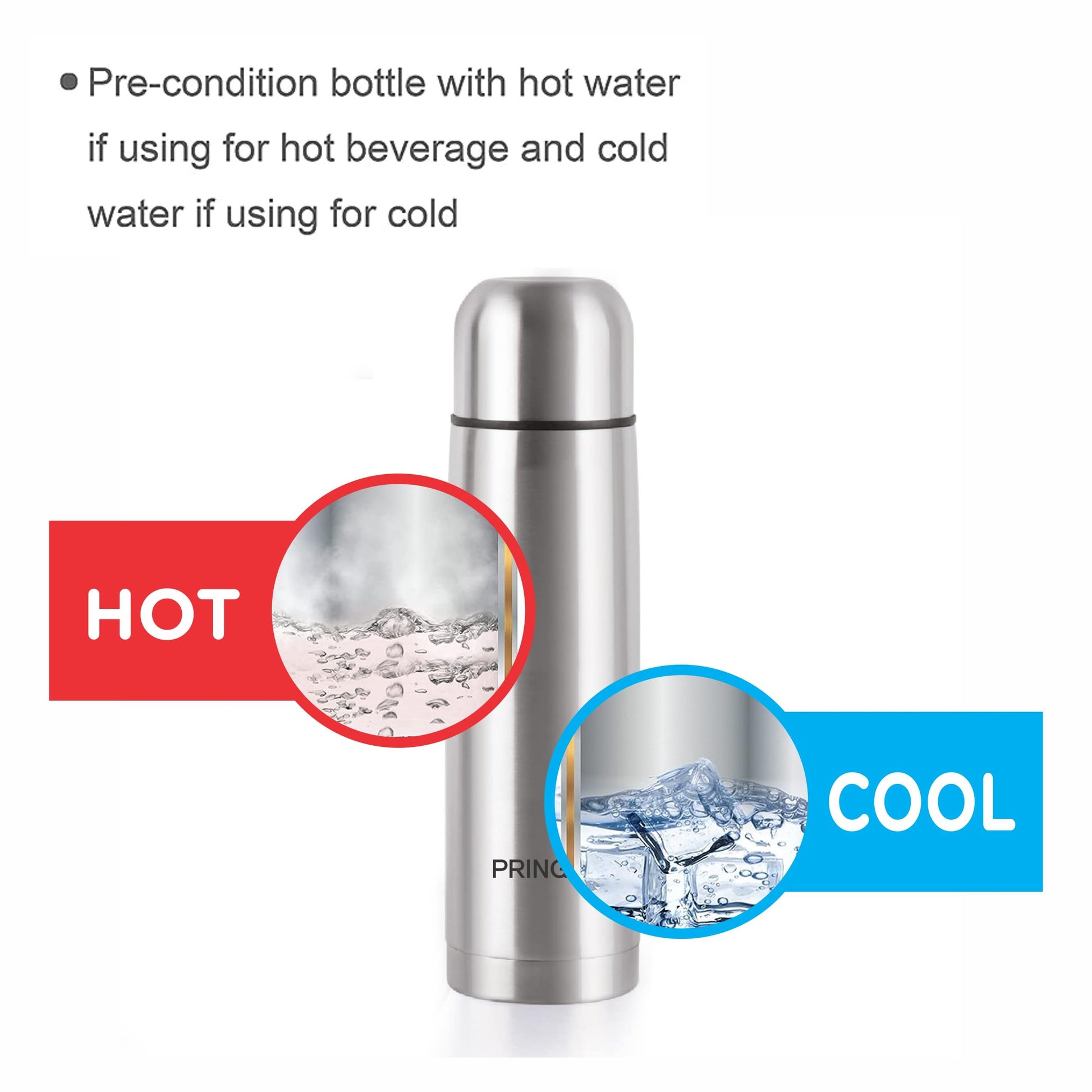 Pre-condition bottle with hot water if using for HOT beverage and cold water if using for COLD.