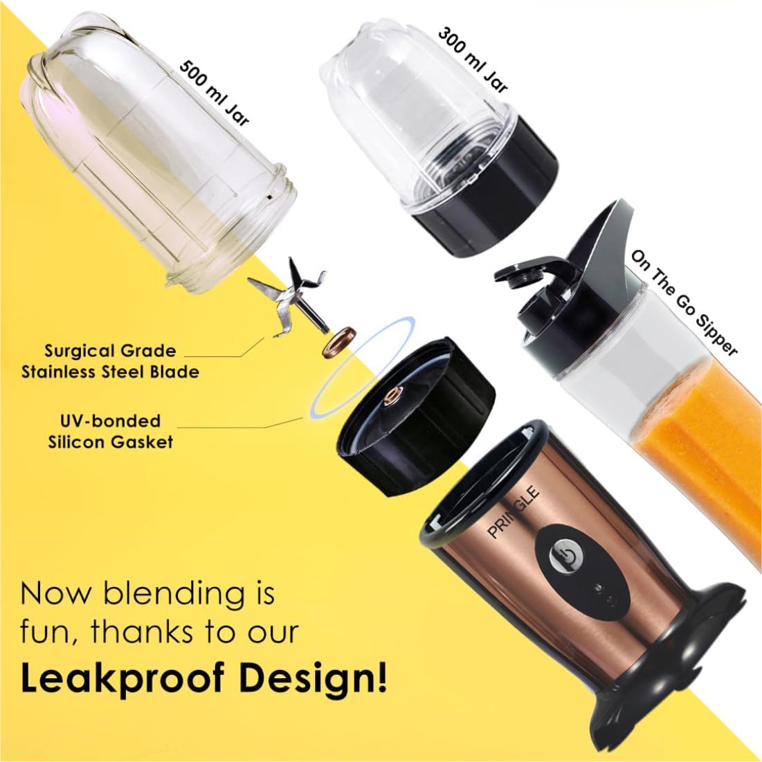 The PRINGLE appliances Nutri-blender Mixer-Grinder-Blender is great for creating everything from smoothies and juices to finely ground masalas and chutneys, thanks to its strong, high-speed engine. Jars made of tough polycarbonate Two transparent polycarbonate jars are included with this mixer-grinder-blender. These jars are essentially unbreakable thanks to this substance, and their transparent form allows you to check the consistency of the components without having to open the top several times. Simply add the jar of your choice on top of the pringle nutri NB103 mixer-grinder-blender, twist it in place, and you're ready to prepare anything, including nutritious smoothies, aromatic masalas, and delectable shakes.