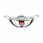 💪TRIPLY STAINLESS STEEL CONSTRUCTION: The kadai features a three-layer construction, with an inner layer made of food-grade 18/8 stainless steel for healthy cooking, a middle layer of encapsulated aluminium for even heat distribution, and an outer layer of 430 magnetic stainless steel for induction compatibility.