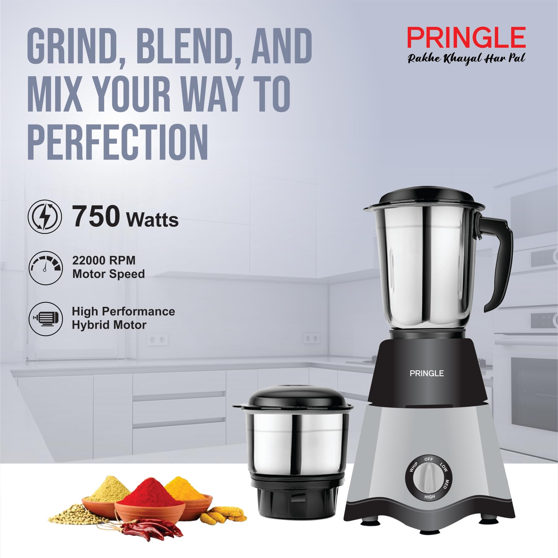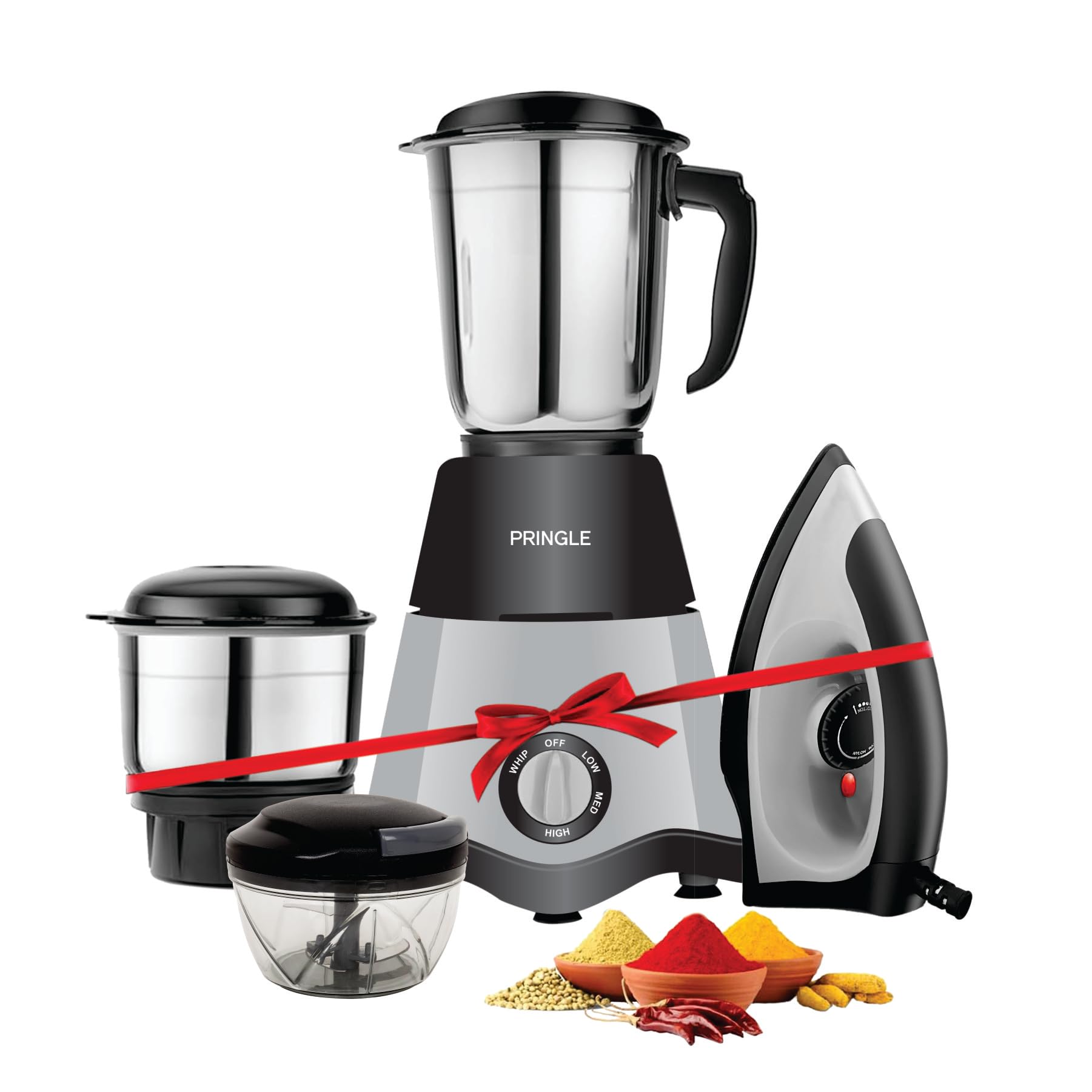 Pringle All Black Kitchen King Combo Mixer Grinder ,Pulling Chopper and Dry Iron combo for your daily needs! Make some delicious recipes at home with the help of this Pringle mixer grinder . With a multitude of features, such as the 3-speed setting knob, easy-grip handles, and a 750 W powerful motor, this mixer grinder makes cooking easy and convenient. With the Pringle 1000 watt dry iron, get your dream job, impress your crush, and make heads turn at family functions by flaunting crease-less fashion. This home appliance features a Stunning Plastic Body, a Temperature Control, and a Non-stick Coated Soleplate for easy and quick ironing.This pringle vegetable chopper is carefully designed to simplify all your chopping needs