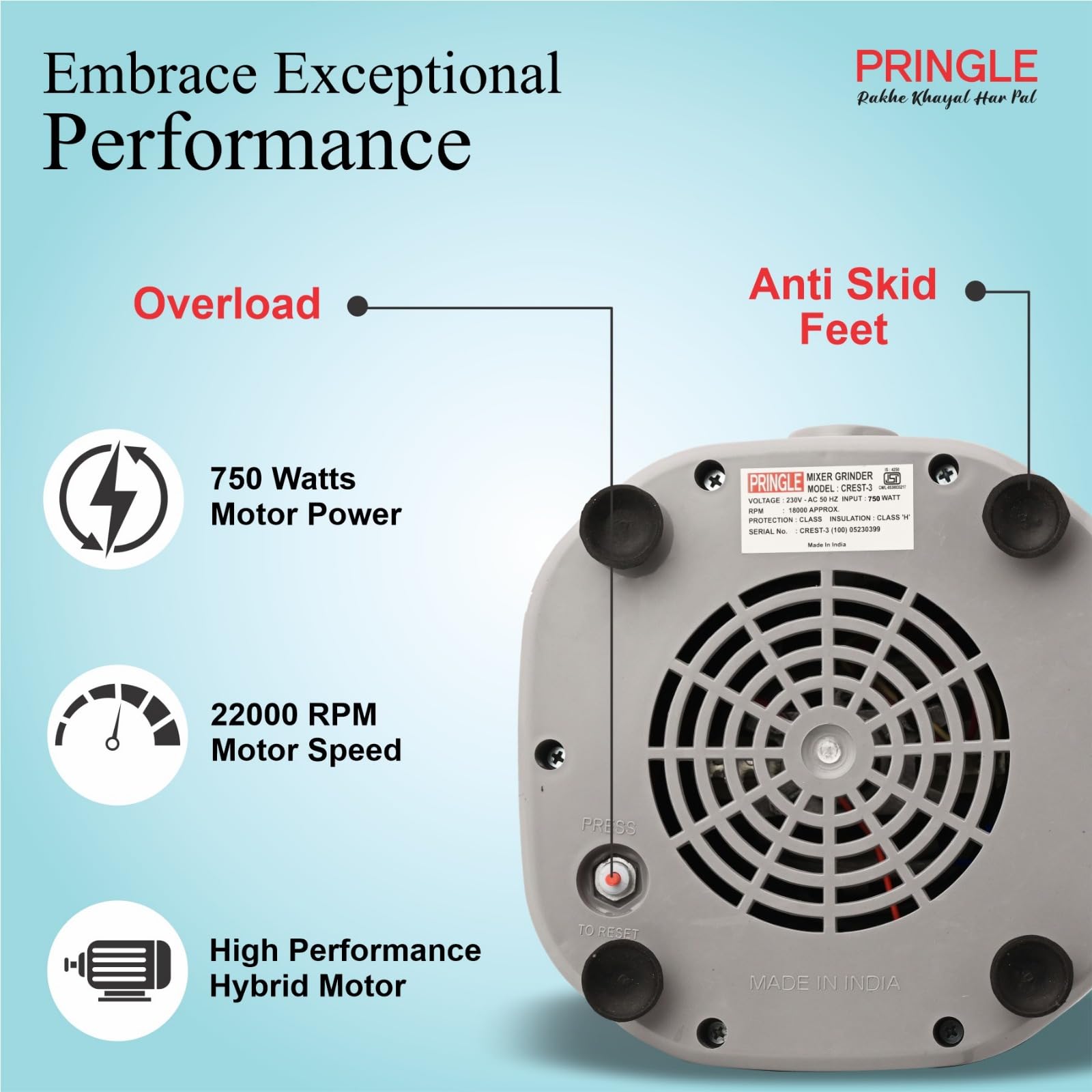 - Content : 1 Unit 750W Mixer Grinder including Mixer Motor, 3 Stainless Steel Jars Set, Jars Lids Set, Warranty Card and Instruction Manual