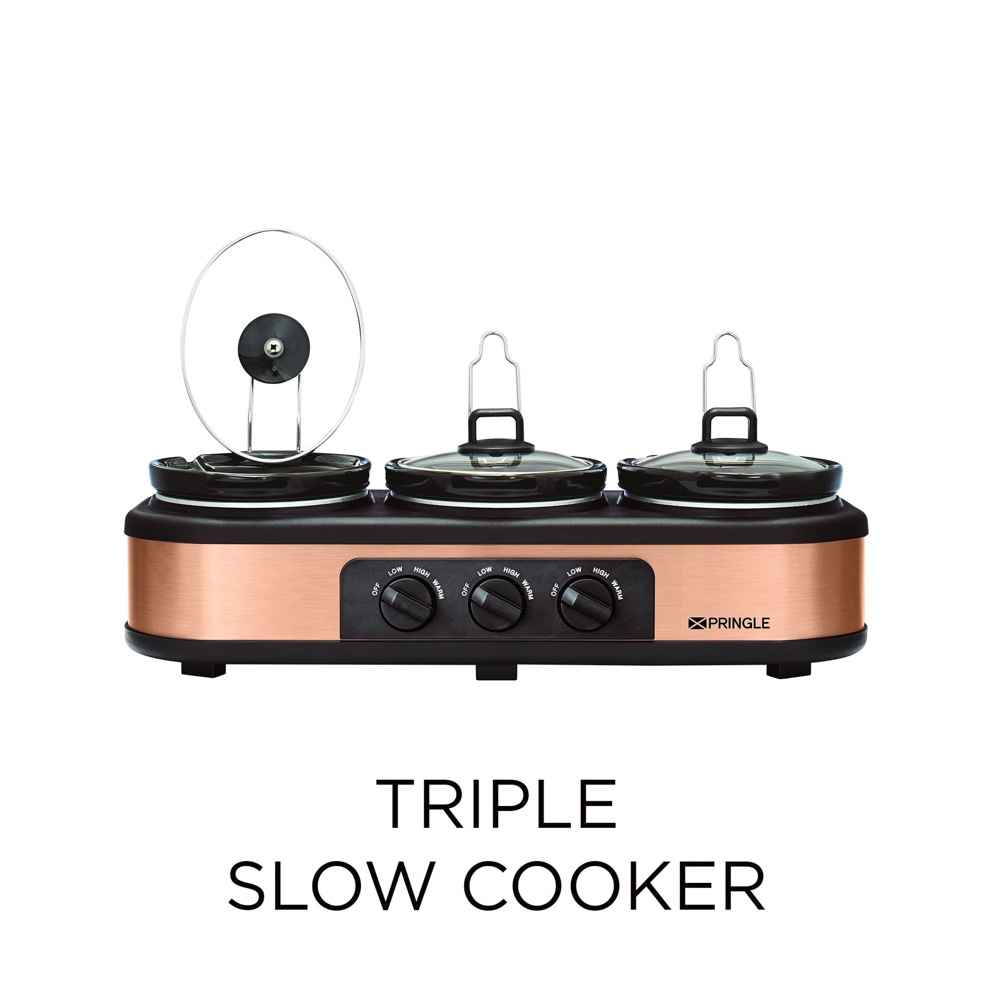 Pringle Electric Slow Cooker | Ceramic Pot with Glass Lid | Copper Color FW 1806 - Capacity 4.5L ( 1.5L X 3 Pot) - 1 Year Onsite Warranty Copper