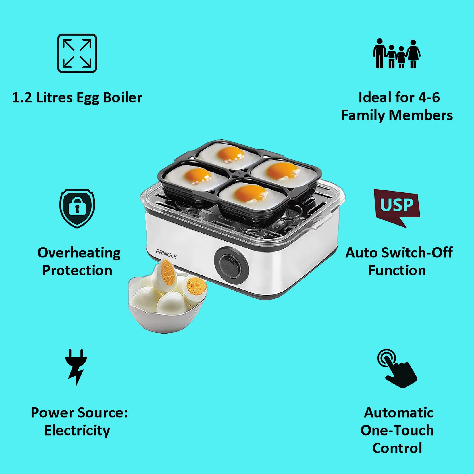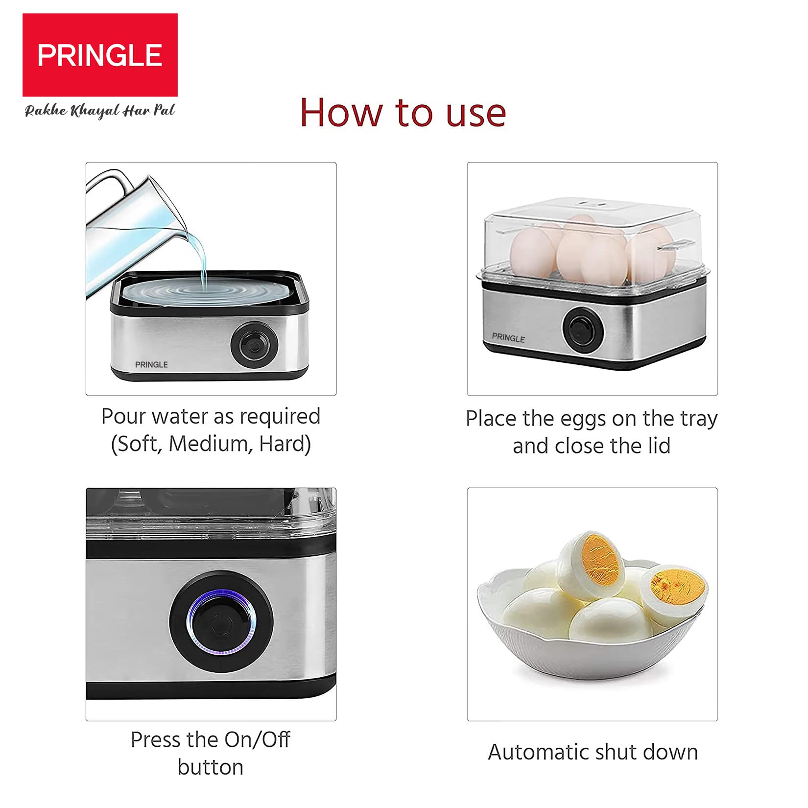 Pringle Egg Boiler comes with stainless steel body and flat heating plate which helps in boiling up to 8 eggs at a time within minutes.