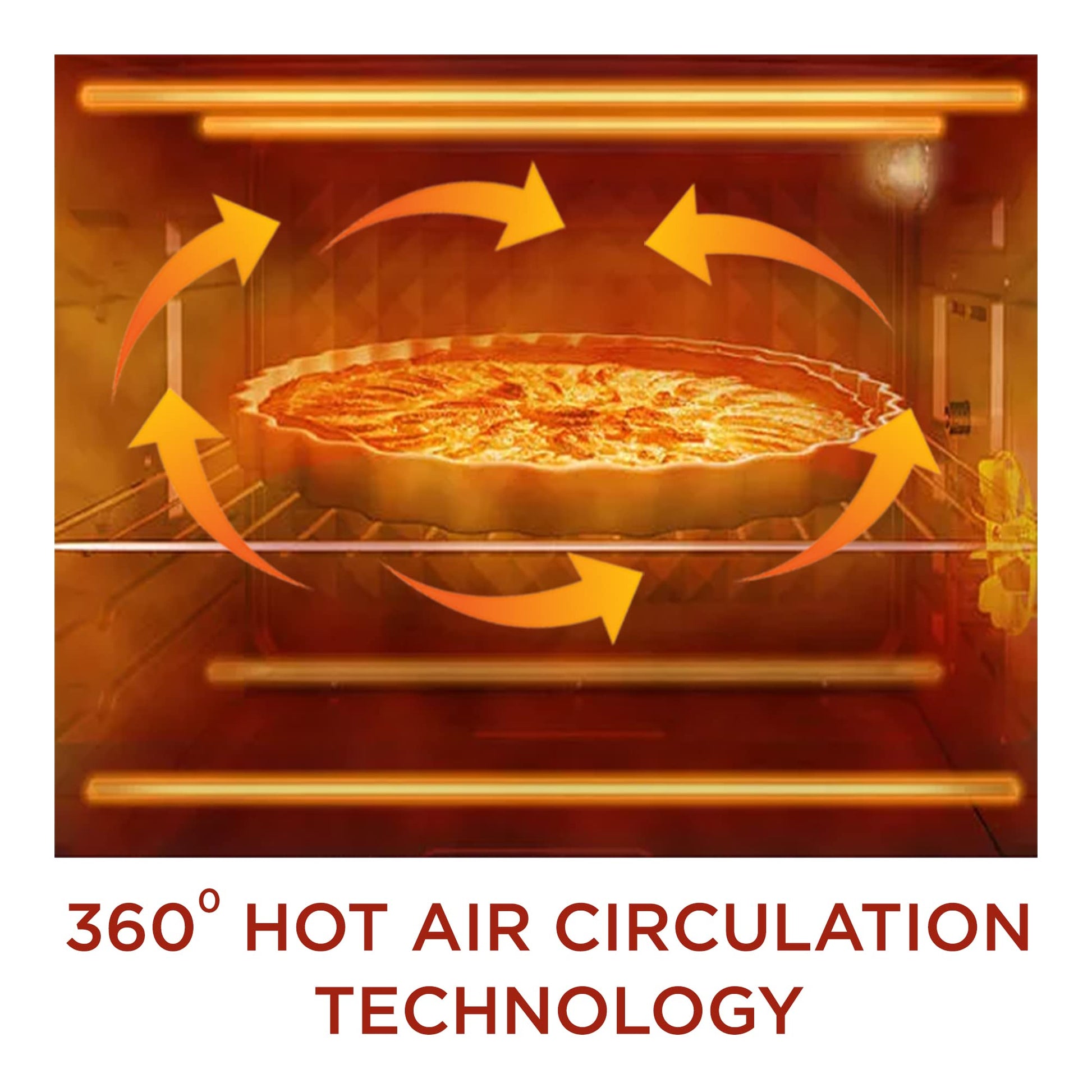 - 360° Air Heating : Featured with 360° hot air circulation technology, the air fryer oven helps you achieve crispy food in no time by distributing heat in all directions. The 25L Oven Toaster griller gives you the advantage of cooking for a large family at once.