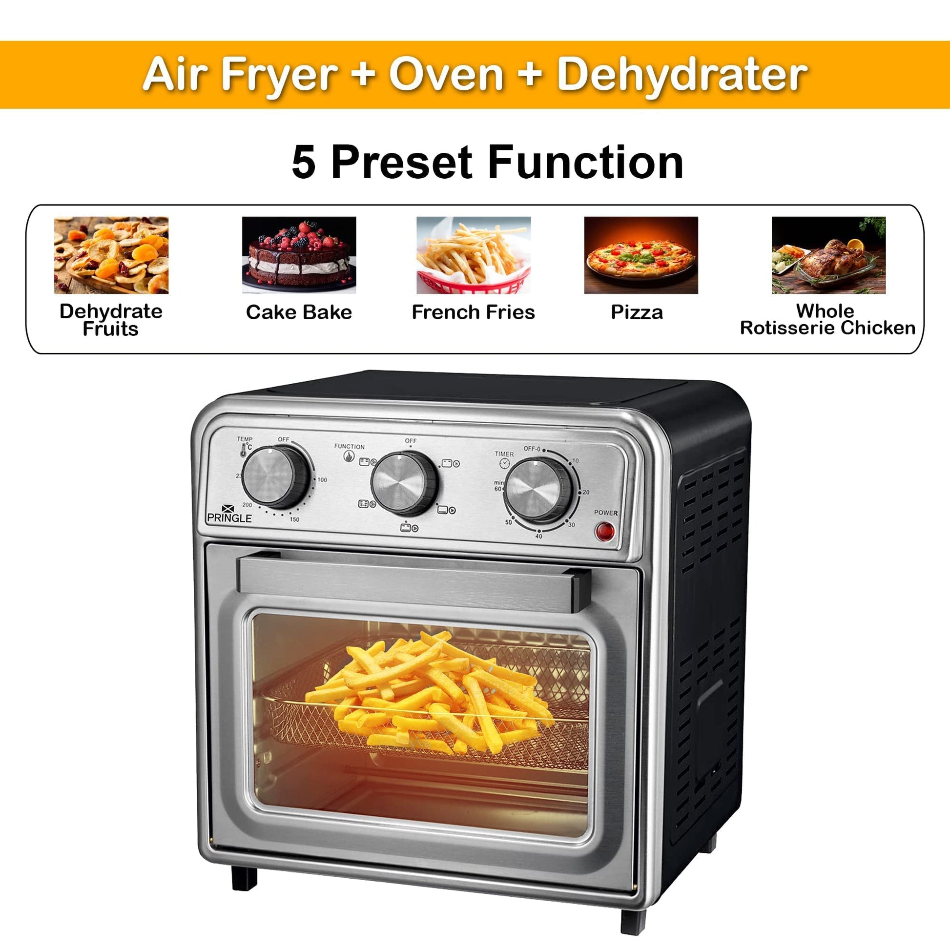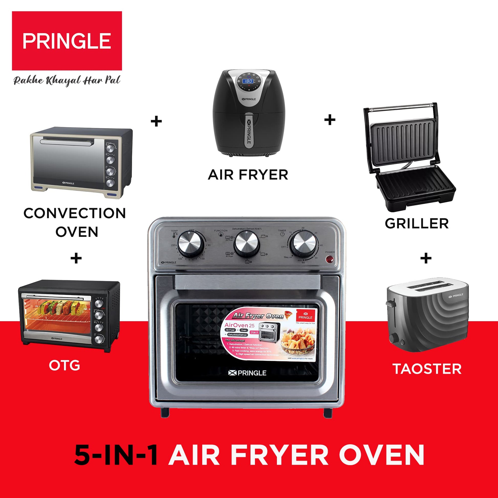 Pringle appliances air fryer oven has Aero crisp technology which quickly disperses heated air in all directions. It also evenly cooks the food, preserving the crispy exterior texture. It even helps to keep the moisture in your food. The technology of Hot Air -It has a 360-degree air circulation system. As a result, the hot air and the fan have the ability to distribute heat in all directions. This method guarantees healthy cooking in a short amount of time. Controlling the temperature- It has 5 Auto Preset Options along with a temperature control that can be adjusted. pringle air oven has Dual Grill Rack Thanks to the Dual Grill Rack, you can cook two different types of meals together. You can do so at the same time. It also ensures that the cooking space is maximised. Adjustable Temperature- You can easily adjust and set the temperature to up to 230° C. Timer It comes with a timer, which you can set from 0 to up to 60 minutes. Preset Function - Toast, Bake, Broil, Air Fry and Reheat.
