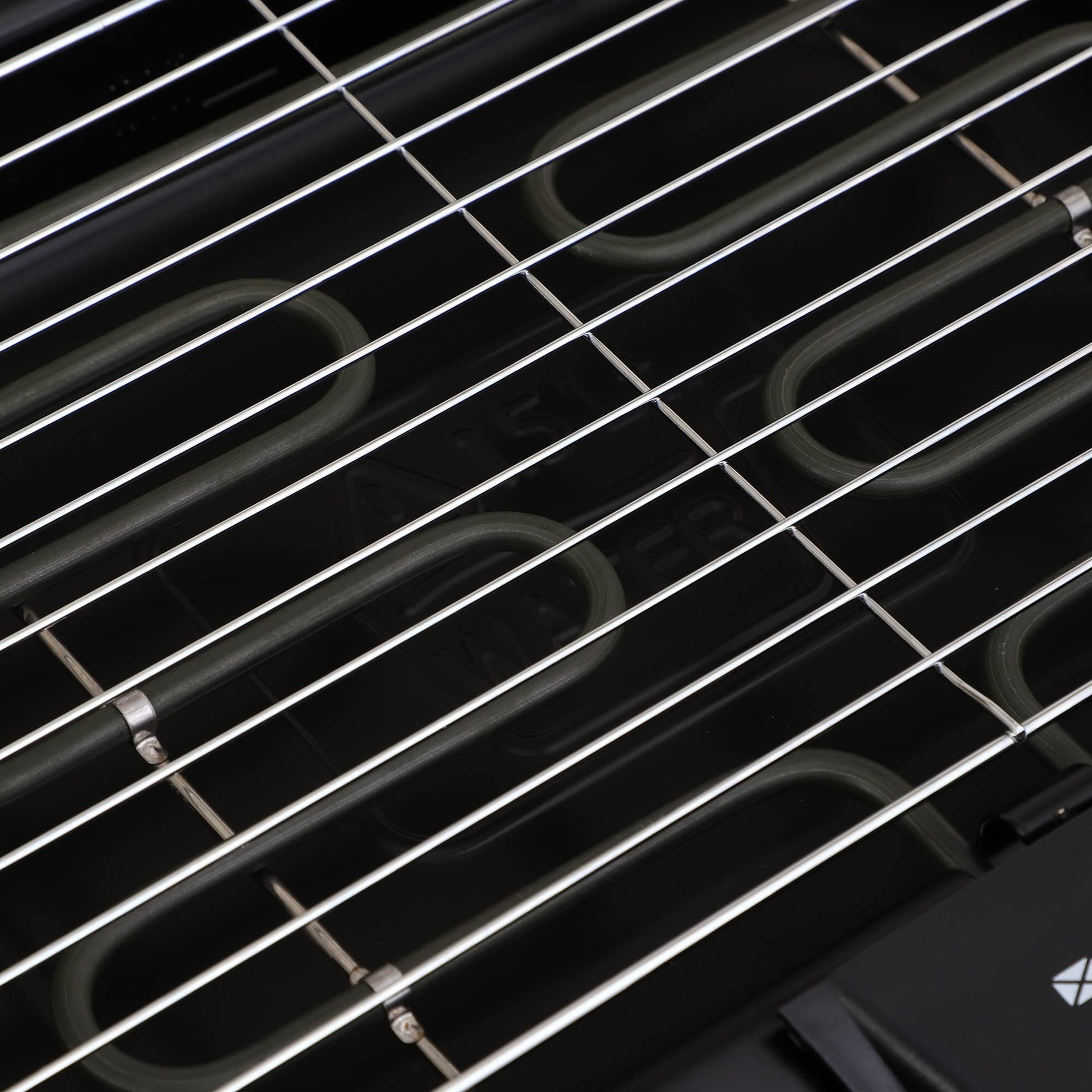 Demountable Design: The portable indoor/outdoor electric bbq grill can be taken into 4 mian parts. It is convinient for cleaning, for repairing and for assembling.(1. Cooking Grid. 2. Heater Pipe and Controller with wire. 3. Oil-receiving tray 4. Base Plate and Floor Mat)
