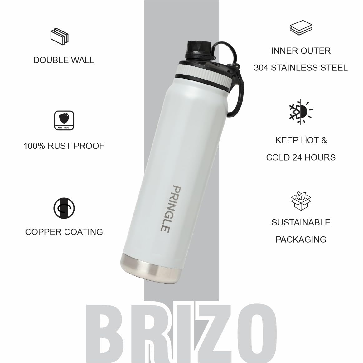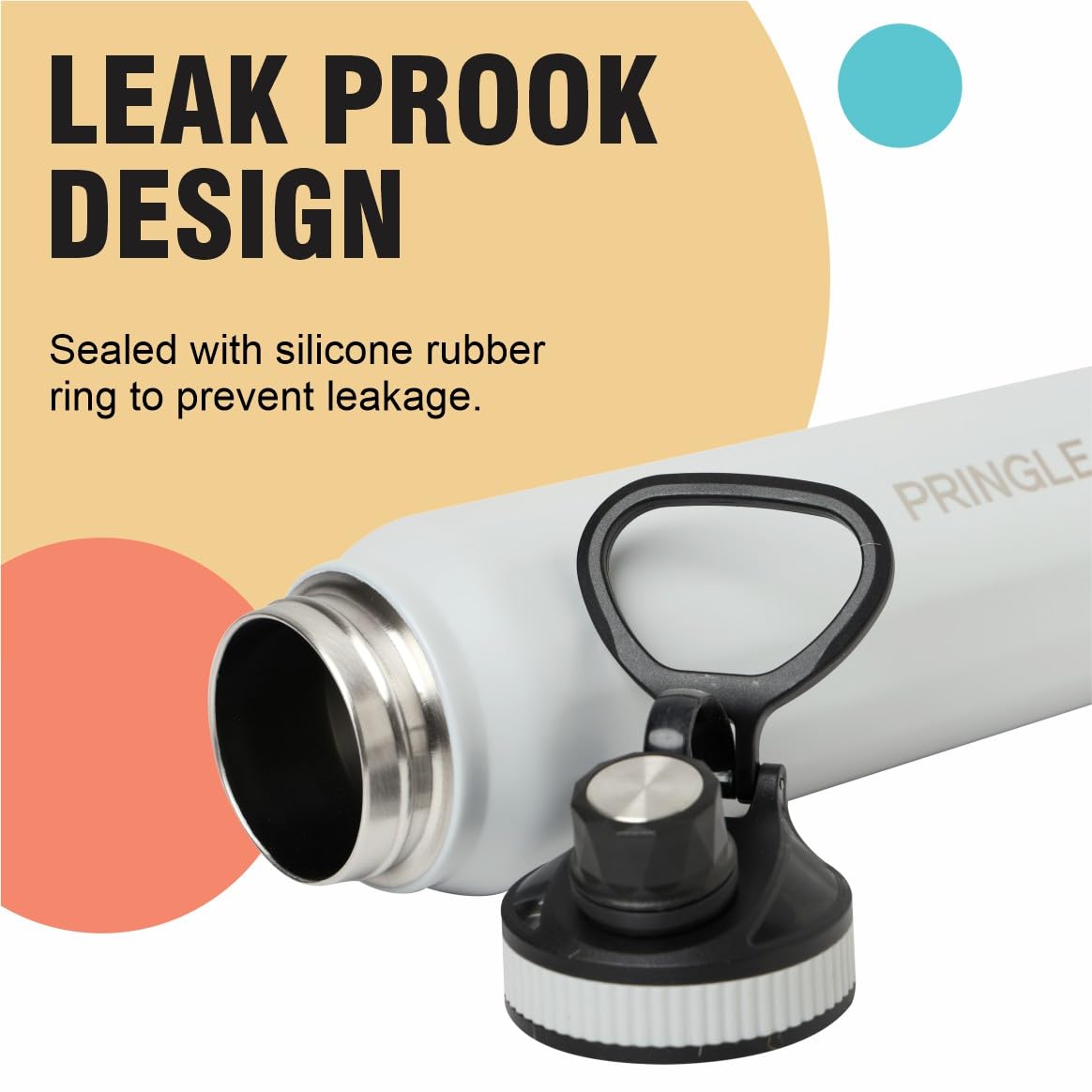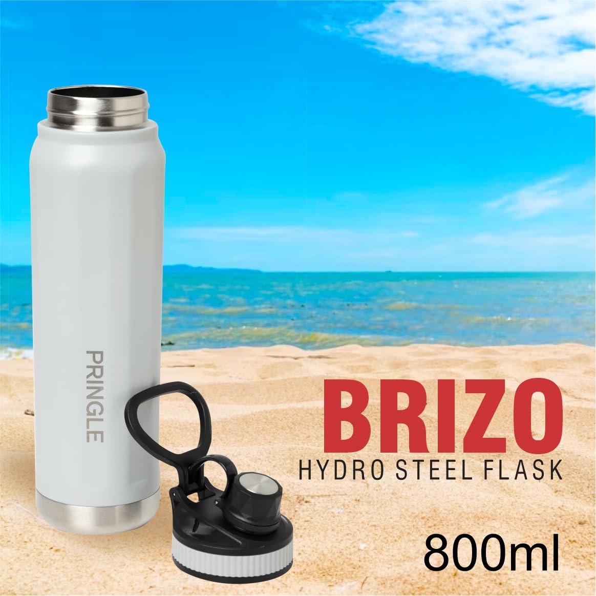 Pringle Brizo 800ml sports water bottle | Hydrosteel Stainless Steel Vacuum Flask: Leak-Proof | Sipper Bottle with Secure Lid & Large Capacity | Ideal for, Office, Gym, Travel (Grey)