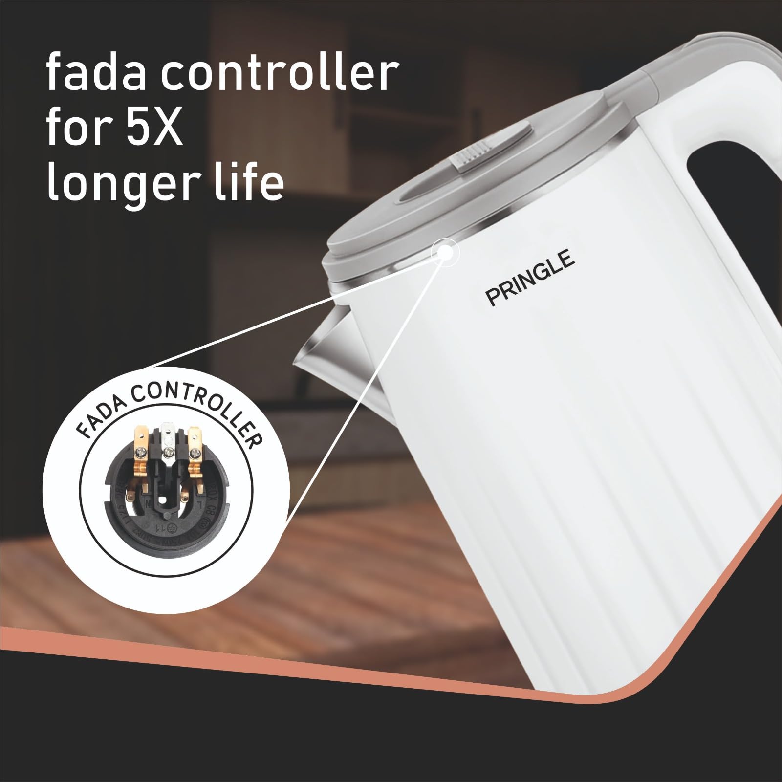 Pringle Electric Kettle IVY 1.2(1500Watt) Stainless Steel Cool Touch Outer Body with 12 Months Onsite Warranty- White