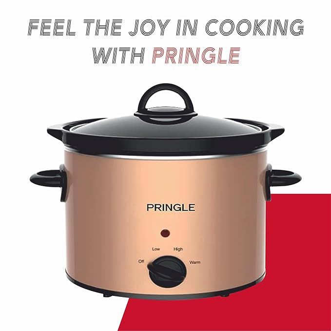The Pringle FW1809 Slow Cooker is ideal for preparing a hearty supper at home. Fill it up with your favourite ingredients and let it simmer slowly to prepare tasty, handmade, and nutritious meals without the fuss. This means you can make it in the morning and have your meal ready when you come home from work. Ceramic Removable Oval Pot The removable inner oval ceramic pot and lid rest make serving and cleaning a breeze. Lid made of tempered glass The tempered glass cover allows you to keep an eye on the cooking process. Temperature Controls Warm, Low, and High Automatic Heat Settings The Keep Warm feature keeps the food warm until it's time to serve it.